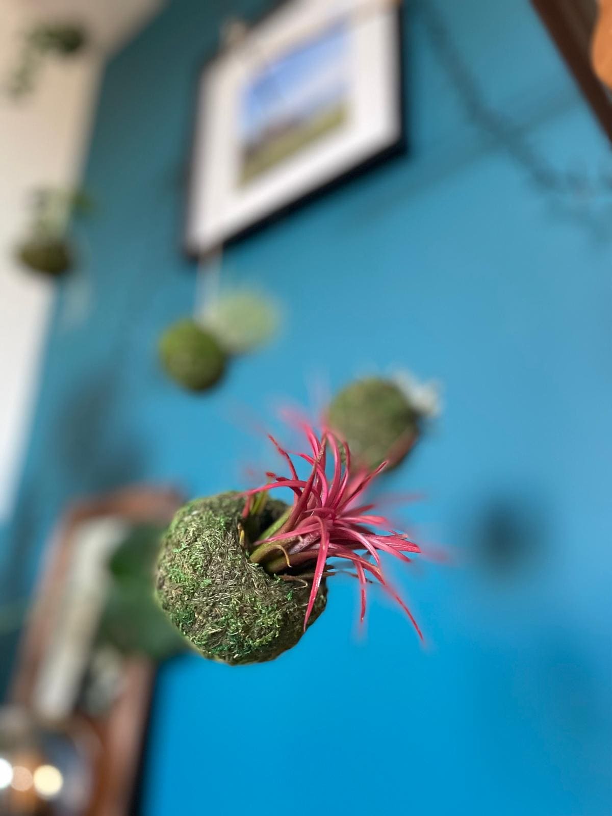 💡 Astuce : Après la floraison, votre Ionantha produira des “pups” (rejets) que vous pourrez séparer pour créer de nouveaux kokedamas !