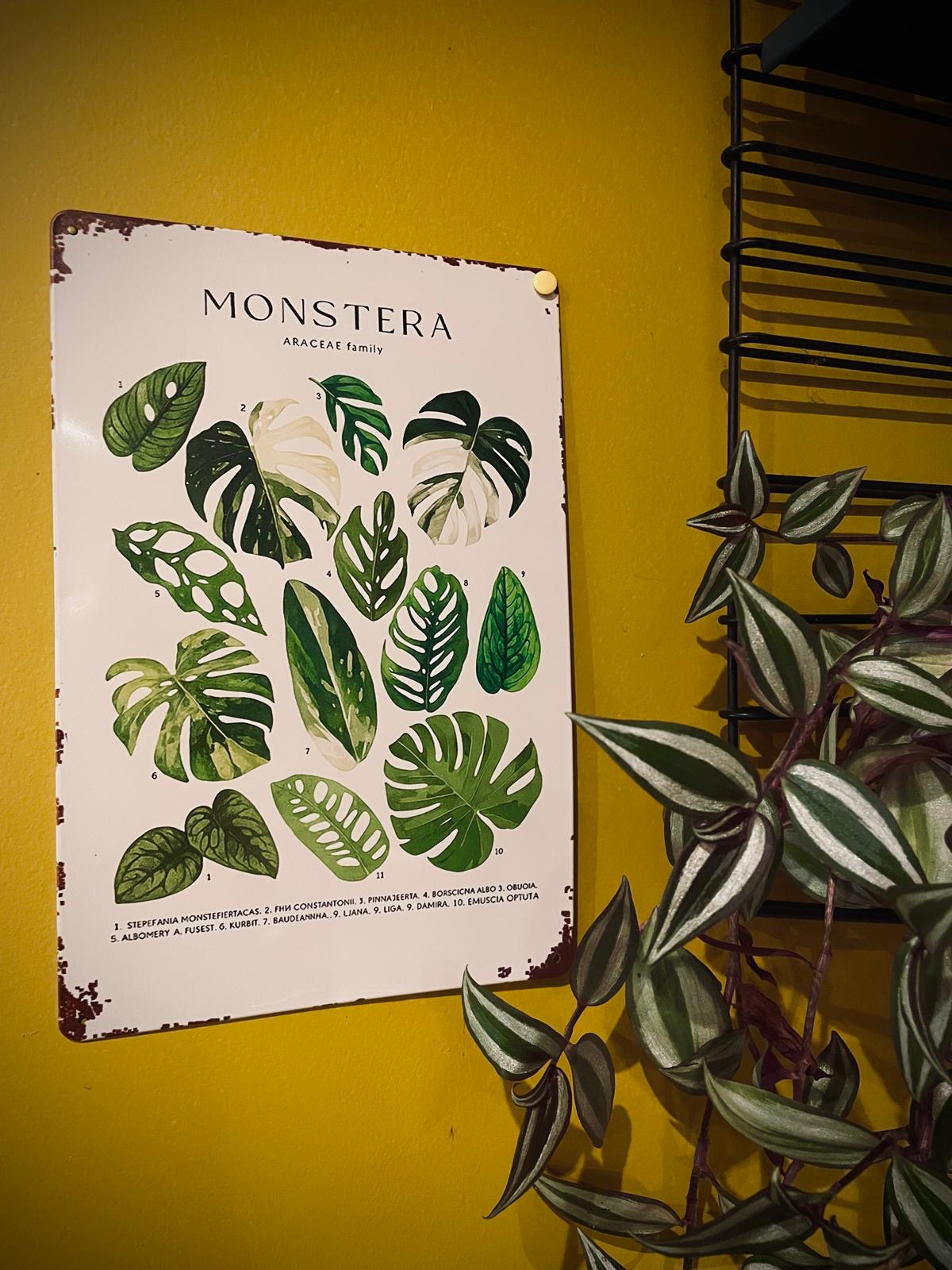 Transformez votre intérieur avec cette magnifique plaque décorative monstera en tôle vintage format 20x30cm. Cette illustration botanique présente les plus belles variétés de la famille des Aracées, parfaite pour tous les passionnés de plantes tropicales.