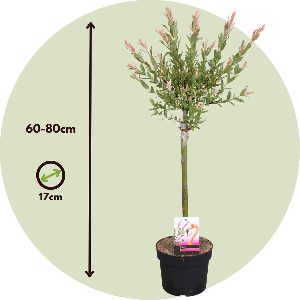 Soin: alix Flamingo est une plante rustique qui peut tolérer jusqu’à -15°C. Il peut atteindre jusqu’à 3 mètres de haut et deux mètres de large. Il est conseillé de tailler le Salix chaque année au mois de mars pour maintenir l’arbuste compact et plein.