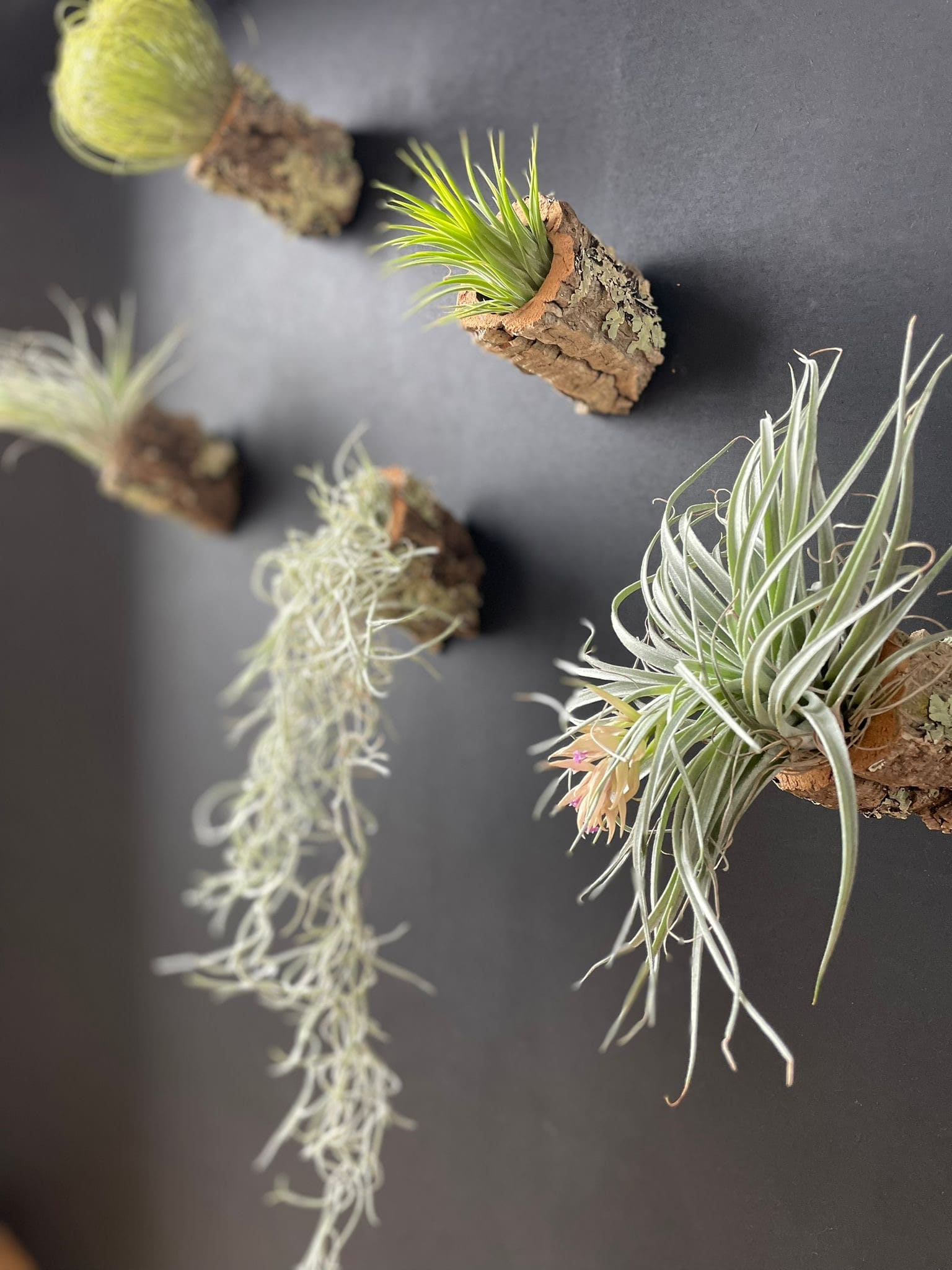 Découvrez notre tillandsia sur chêne-liège plante aérienne. Premièrement, cette plante vit sans terre complètement. Deuxièmement, nous la fixons sur chêne-liège naturel. Troisièmement, vous choisissez parmi 5 variétés disponibles. Enfin, l’entretien devient extrêmement simple.